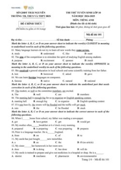 Đề thi thử tiếng Anh vào lớp 10 2024-2025 – Iris – Thái Nguyên