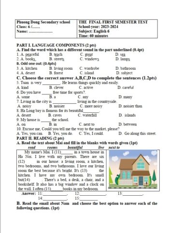 Ôn tập thi cuối học kỳ 1 tiếng Anh lớp 6 2024-2025 Phương Đông – Quảng Nam