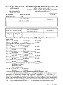 Ôn tập thi cuối học kỳ 1 tiếng Anh lớp 7 2025-2026 Kiên Giang, các bạn tham khảo ôn thi nhé