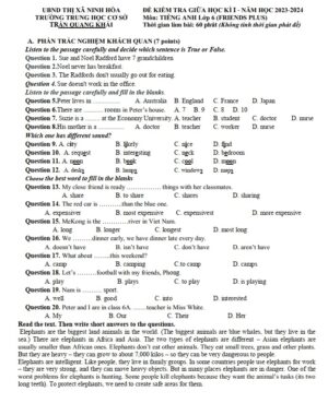 Ôn tập thi giữa học kỳ 1 tiếng Anh lớp 6 2024-2025 Trần Quang Khải – Ninh Hòa