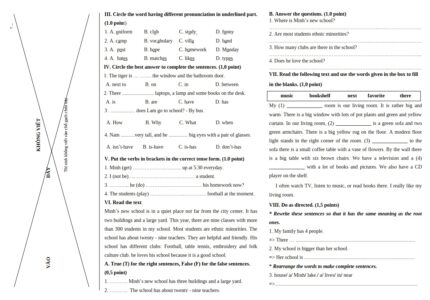 Ôn tập thi giữa học kỳ 1 tiếng Anh lớp 6 2024-2025 Vị Xuyên – Hà Giang