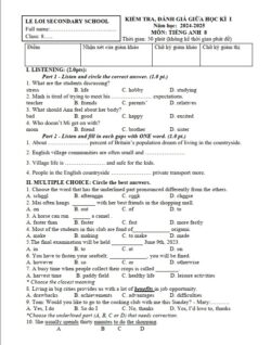 Giải đề Ôn tập thi giữa học kỳ 1 tiếng Anh lớp 8 2025 – Lê Lợi – Bà Rịa Vũng Tàu